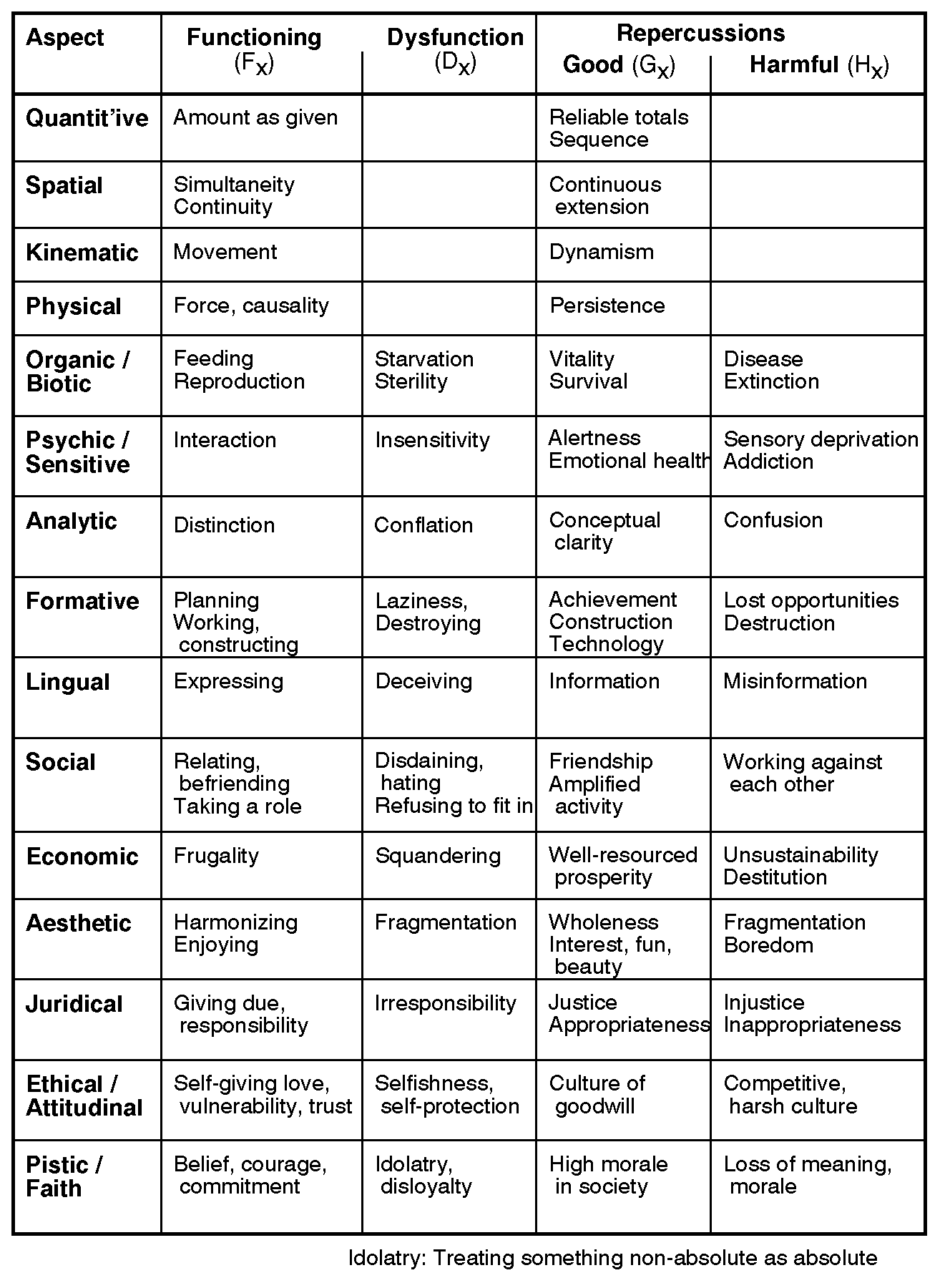 Summary: Dooyeweerd offers a philosophically grounded suite of 15 aspects, which we will use as our conceptual tool.